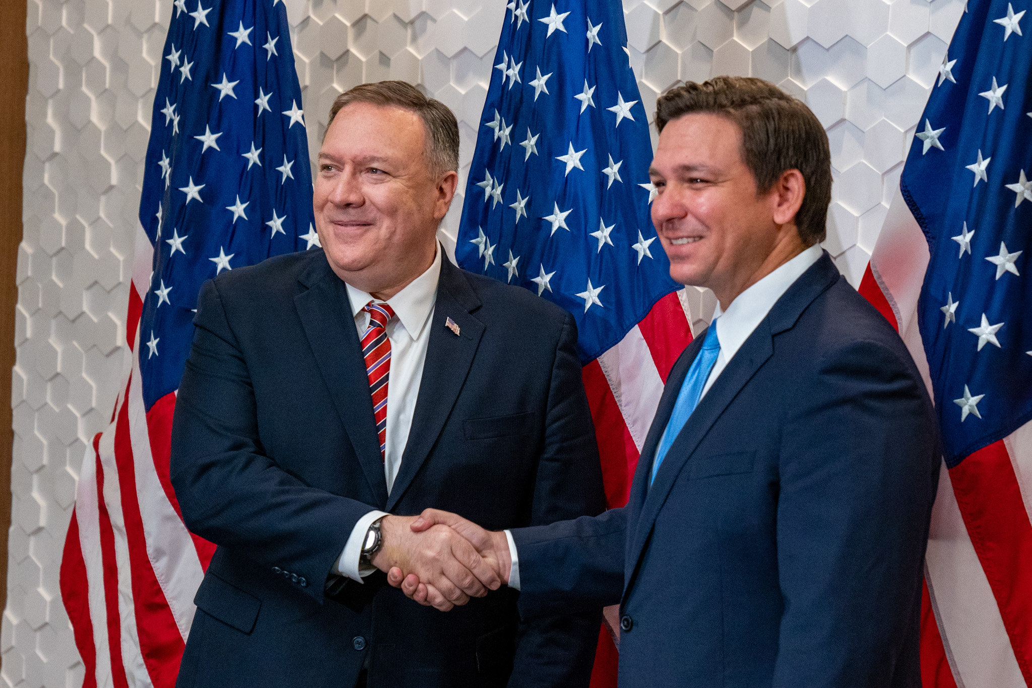 Secretary of State Michael R. Pompeo meets with Florida Governor Ron DeSantis, in Miami, Florida on January 23, 2020. [State Department Photo by Ron Przysucha/ Public Domain]
