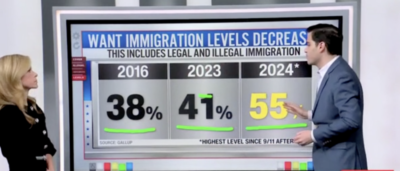 A Gallup poll found that 55% of Americans in 2024 want immigration levels to decrease, a stark rise from the 38% in 2016 and the 41% in 2023 who agreed with this sentiment, Enten said.