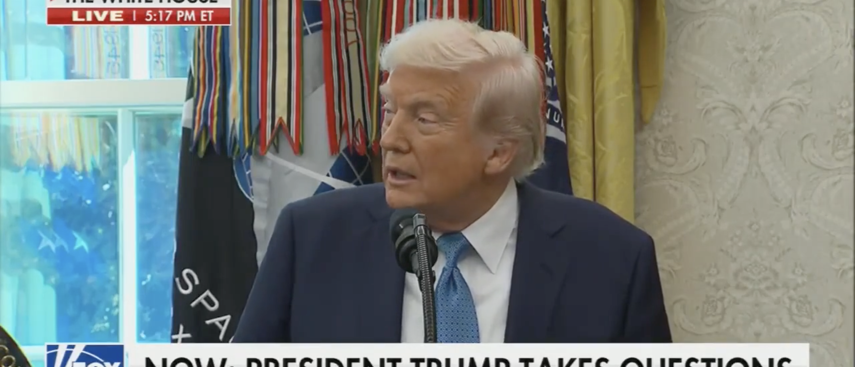 Donald Trump in Oval Office discussing China tariffs [Screenshot/Fox News/"The Five"]