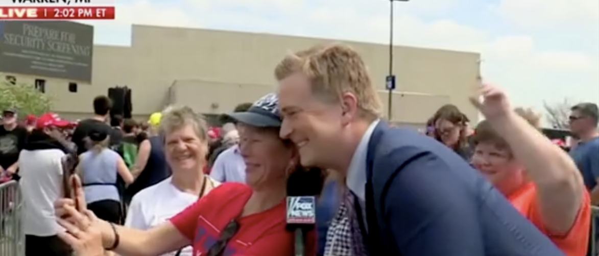 Trump is set to hold a rally at Macomb Community College in Warren, Michigan, to mark his first 100 days of his second term. Outside of the venue, several enthusiastic supporters embraced Doocy and celebrated the president’s policies.